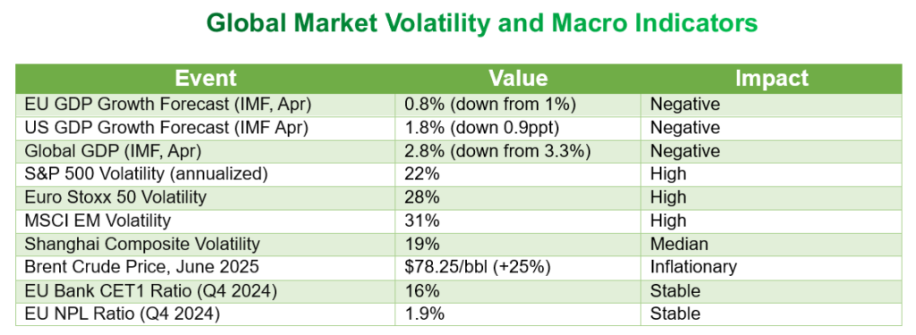 Middle East Escalation:- Recent Israeli Iranian hostilities have triggered a surge in oil and gas prices Brent crude rose 25% in June 2025 alone prompting concerns about inflation and global growth. Markets have responded with moves into safe-haven assets while riskier assets like equities and high-yield credit have underperformed.