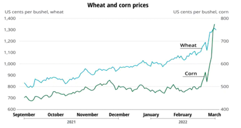 - Furthermore, the prices of major mineral and food commodities such as nickel, palladium, neon, wheat, and corn have risen.