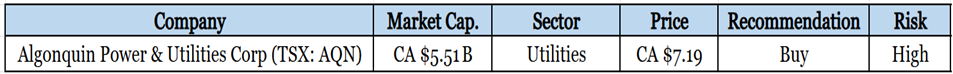 There are some risks involved with Algonquin Power & Utilities Corp.