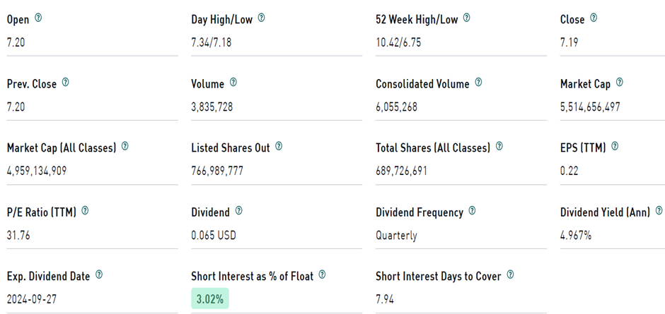 Market Facts gives a “Buy” rating on the stock at the closing price of CA $7.19 as of September 4th, 2024.