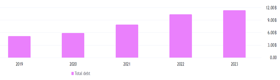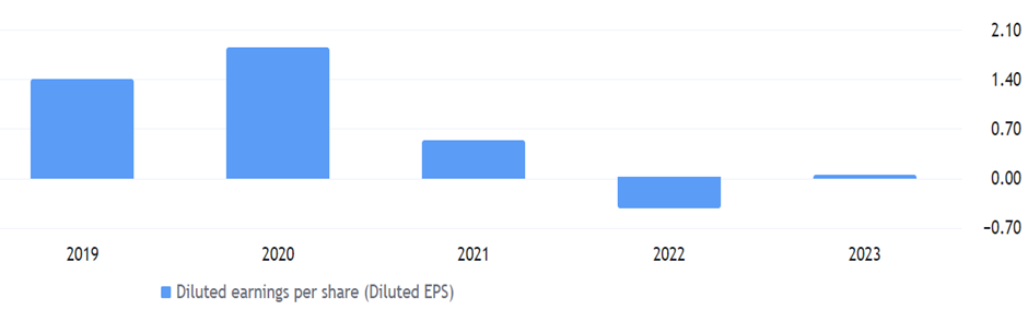 Despite these challenges, the company’s EBITDA, although declining from a peak of US $1.29 billion in 2020, has shown some recovery to US $718 million in 2023. The company has demonstrated revenue growth and operational efficiency, but it faces challenges related to high expenses and interest costs, impacting net income and EPS stability.