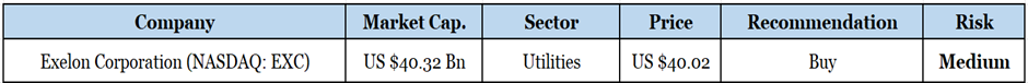 Exelon Corporation is a strong investment choice due to its stable, regulated revenue stream, making it a low-volatility defensive stock with reliable cash flow and a solid dividend yield (~3-4%). As the largest U.S. nuclear power operator, Exelon benefits from the growing push for clean energy and government incentives supporting carbon-free electricity. Its focus on grid modernization, renewable energy expansion, and electrification trends positions it for long-term growth. Additionally, the company has a diverse customer base (10M+ customers) in economically strong regions, ensuring steady demand. While regulatory and policy risks exist, Exelon’s strong market position, ESG appeal, and consistent earnings make it a compelling buy for dividend, defensive, and long-term growth investors.