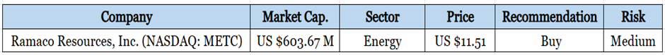 Ramaco Resources, Inc. (NASDAQ: METC), headquartered in Lexington, Kentucky, is a U.S.-based coal company that specializes in metallurgical coal, which is crucial for steel production. Operating mainly in the Appalachian region, the company focuses on producing low-cost, high-quality coal through its vertically integrated operations that span coal production, processing, and marketing. Ramaco’s financial performance is closely tied to global steel demand and the price of metallurgical coal, making it subject to market fluctuations.