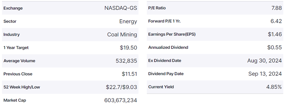 As a U.S.-based producer, Ramaco is also shielded from geopolitical disruptions that affect other coal-producing regions, providing a competitive edge in supply-constrained markets. Despite the environmental and cyclical risks inherent to the coal industry, Ramaco’s solid fundamentals, industry positioning, and potential for stock price appreciation make it a compelling investment choice for those seeking exposure to the metallurgical coal sector.
